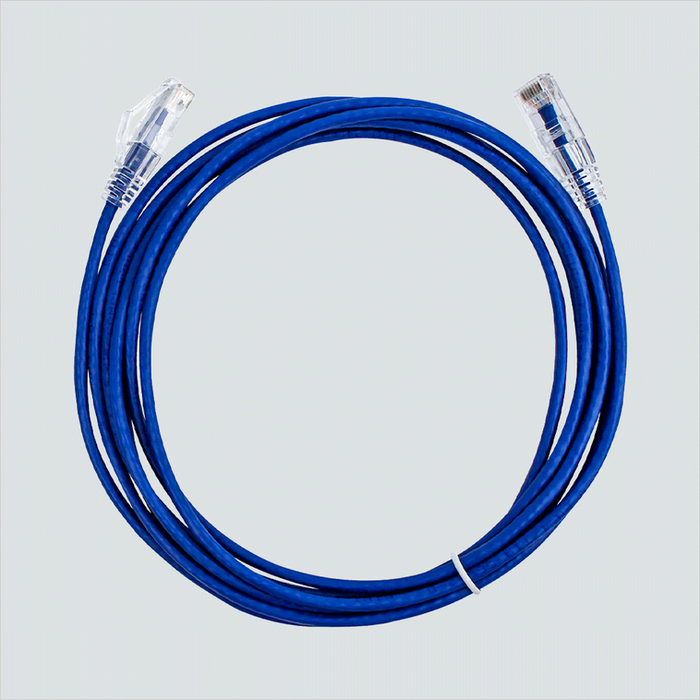 CAT6 Slim Patch Cord, 10G 28AWG Unshielded (U/UTP), Snagless Molded Boot, Bare Copper, RJ-45 to RJ-45 with 50-micron Gold Plated Contacts Wired T568B