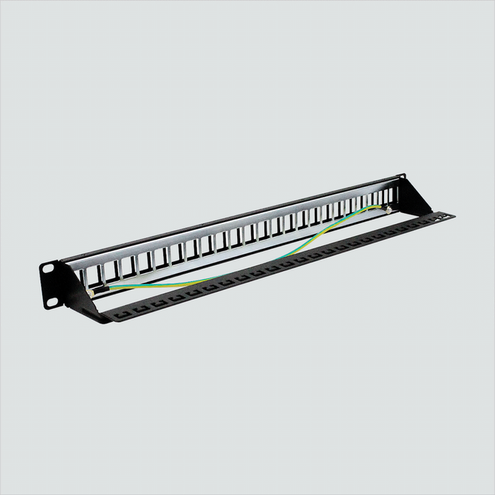 1U, 24‐PORT, Blank, w/ labeling areas, Ideal for multi-media applications, Compatible with keystone style connectors